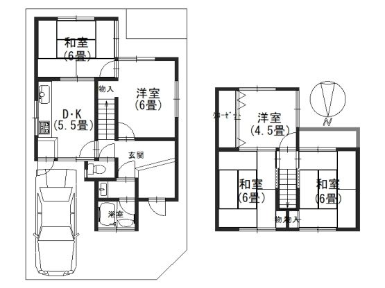 1階:44.74㎡ 2階:33.12㎡ 延べ77.86㎡ |